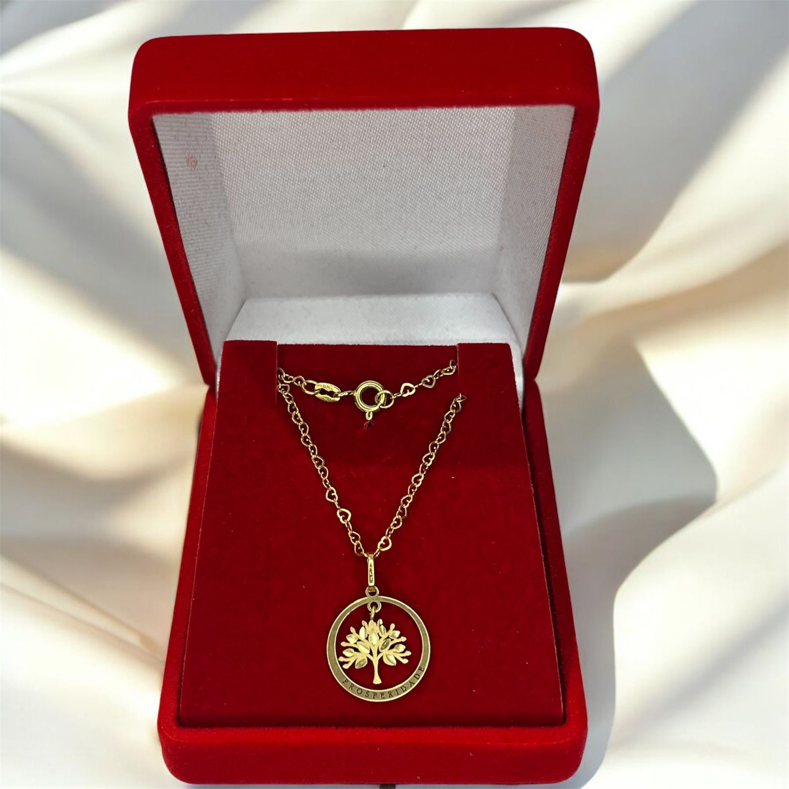 Cordão em ouro 18k com pingente da Árvore da Vida, símbolo de força, crescimento e prosperidade. Uma joia com significado, aliando simbolismo e acabamento refinado.